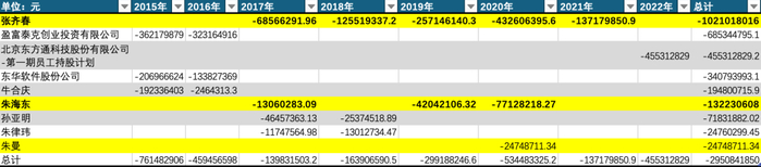 (资料来源:新浪财经)同花顺i问财数据显示,自东方通上市以来股东累计减持套现金额超29.5亿,其中原实控人张齐春、朱海东、朱曼累计套现超11.79亿,违规超额减持期间套现超9.59亿。