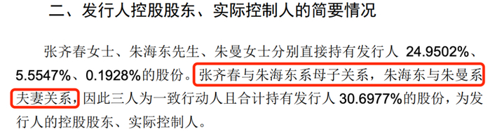 (数据来源:i问财、锐眼哥整理)值得注意的是,这三人其实是一家子的关系,张齐春与朱海东为母子关系,朱海东与朱曼为夫妻关系。