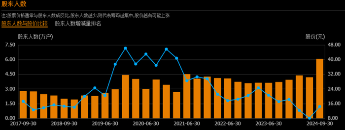 (东方通股价走势截图)截至2024年三季度末,东方通股东人数为6.07万,较2024年二季度末增长超50%,这些在2024年三季度跟着东方通上涨趋势追涨的投资者面临的处境恐怕更加严重,自2024年11月高点23.94元以来,东方通股价已经暴跌超60%。