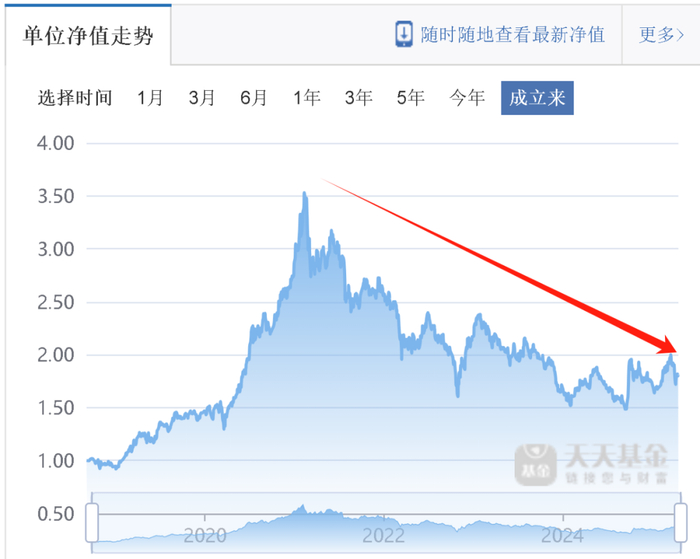 以张坤管理规模最大的易方达蓝筹精选混合为例,2021年初单位净值一度高达3.5,但现在只有1.8,几乎腰斩。