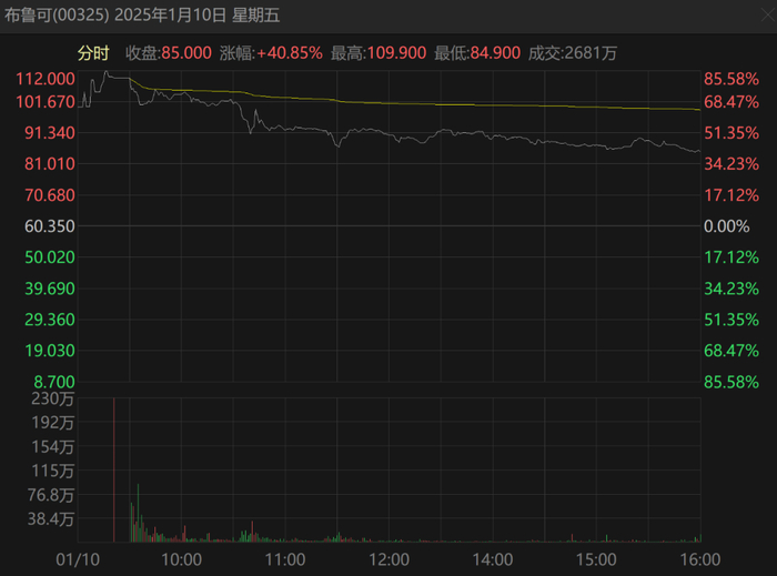 2025年1月10日,布鲁可在港交所挂牌上市,发行价为每股 60.35 港元,开盘即暴涨超过85%,当天收盘大涨40%以上。
