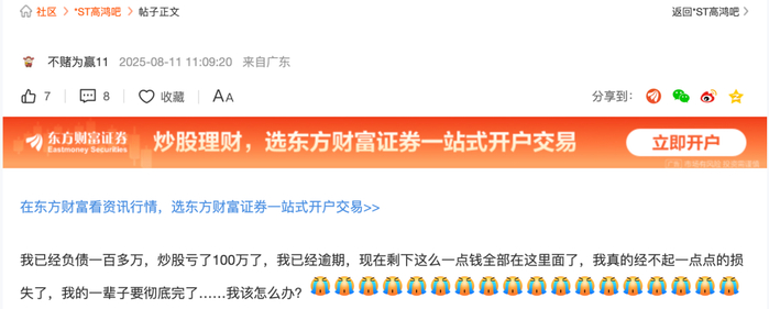 (*ST高鸿股价走势截图)面对这种行情,投资者得多崩溃!