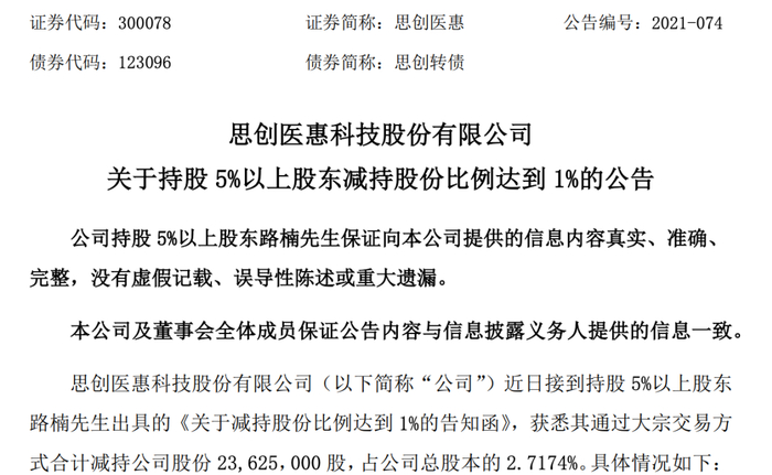 正是章笠中执掌思创医惠期间发生了各种违法违规行为,期间路楠虽不直接参与公司经营决策,但却加快了从二级市场减持套现的步伐。