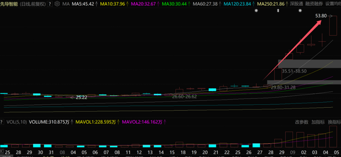 之后的几个交易日,先导智能连续大涨,9月5日又是20cm大号涨停。