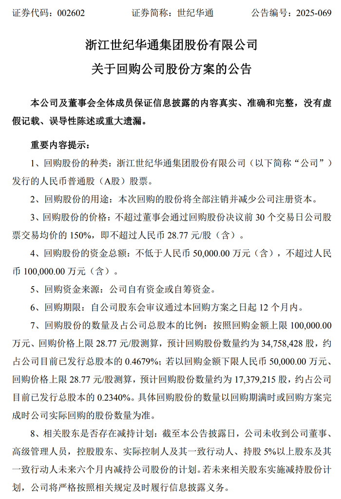 11月12日,摘帽第一个交易日后,世纪华通又发布了一份回购股份的公告,公司计划回购股份的资金总额5亿元-10亿元人民币,回购价格不高于前30个交易日均价的150%,回购期限为自股东会审议通过之日起12个月内。