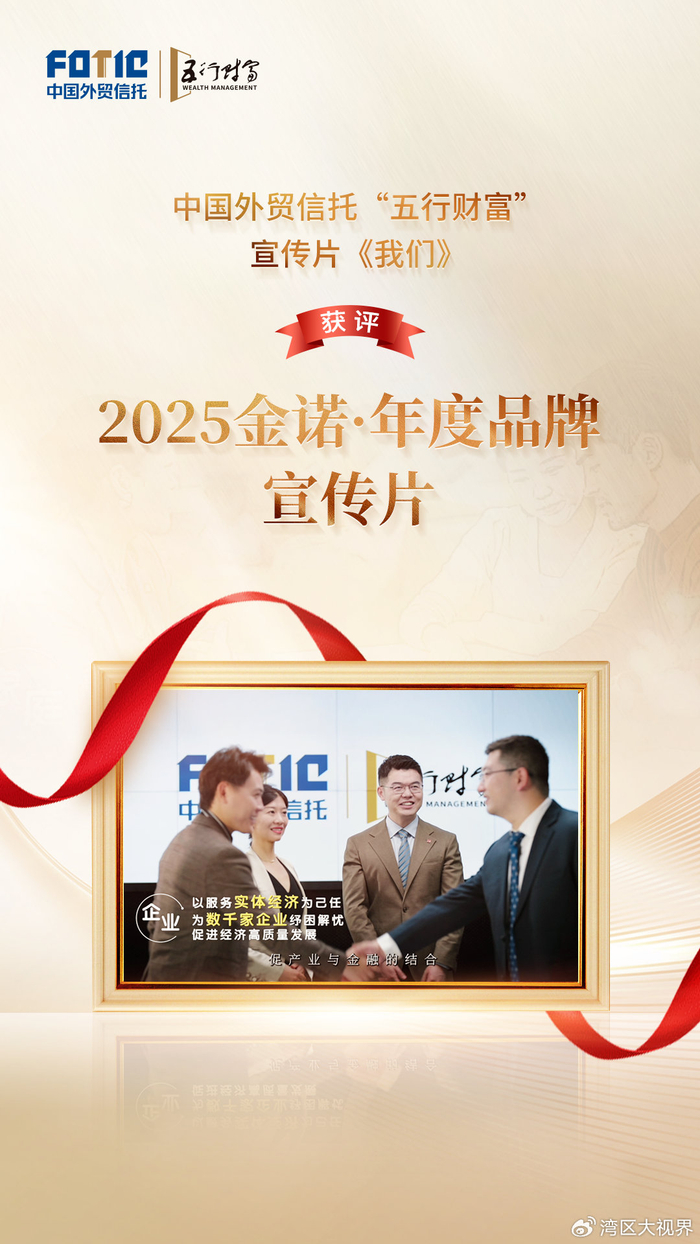 近日,《中国银行保险报》公布了“2025金诺·金融品牌影响力案例”入选名单,中国外贸信托“五行财富”宣传片《我们》获评“2025金诺·年度品牌宣传片”。
