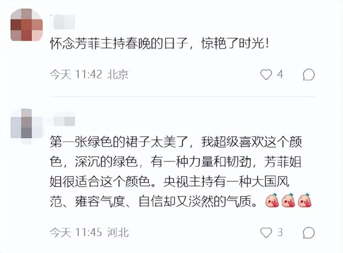 也有不少网友留言,菲姐太适合春晚了,雍容大气。
