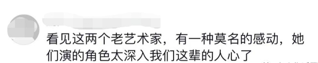 但是,网友们却看到了另外一幕,翻看评论区大家都在纷纷留言:“看见这两个老艺术家,有一种莫名的感动,她们演的角色太深入我们这辈的人心了。”“见到前辈,拥抱完立马蹲下来,这就够很多年轻人去学习了的。”
