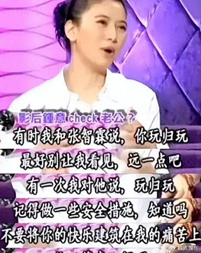 袁咏仪虽然清楚自己的丈夫不老实,但还是告诫他,玩归玩,最好别让我看见,去远一点吧,另外做好安全措施。