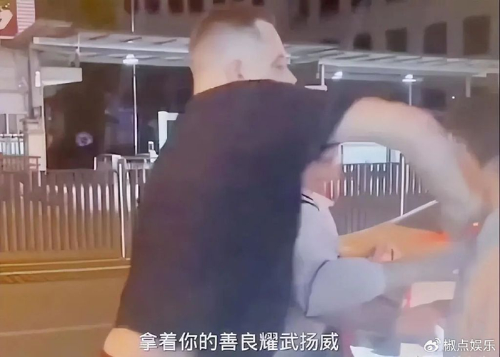 其中一名外籍胖子不仅竖起中指挑衅,甚至动手打向其中一名青年,导致后者脸部受伤。