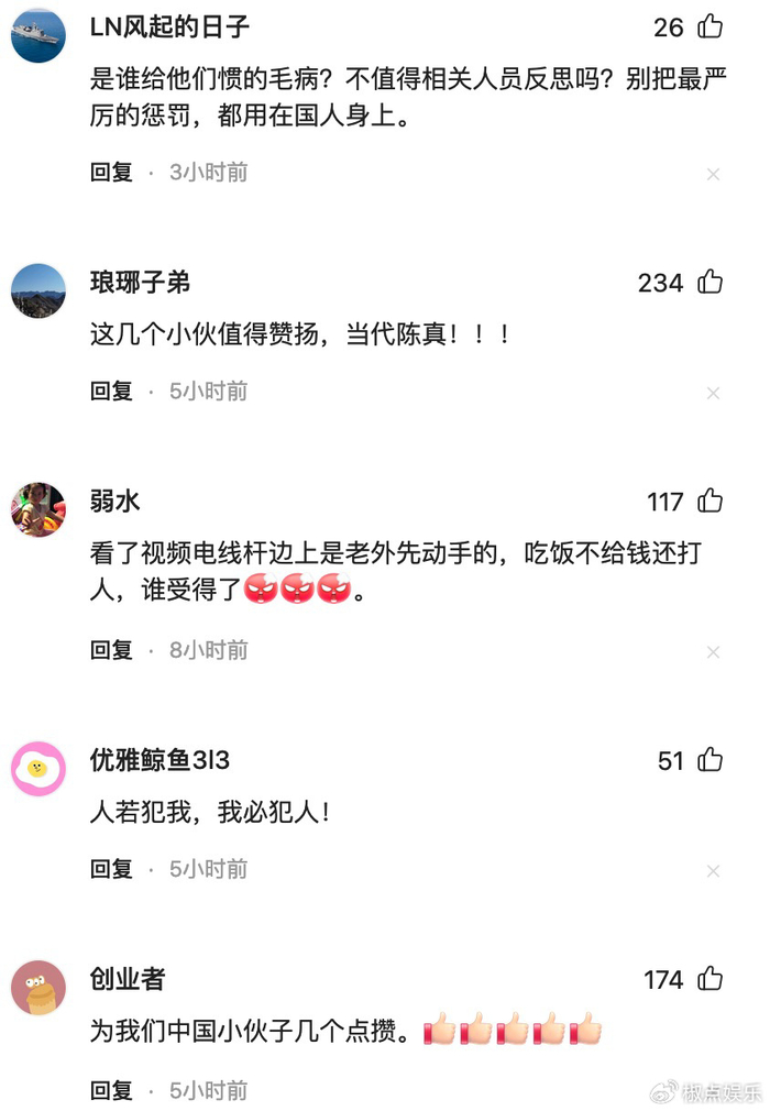 而我们的年轻人丝毫不畏惧身材高大的外国人,后来他们团结一致,对涉事外籍人士进行反击,打得老外毫无还手之力。