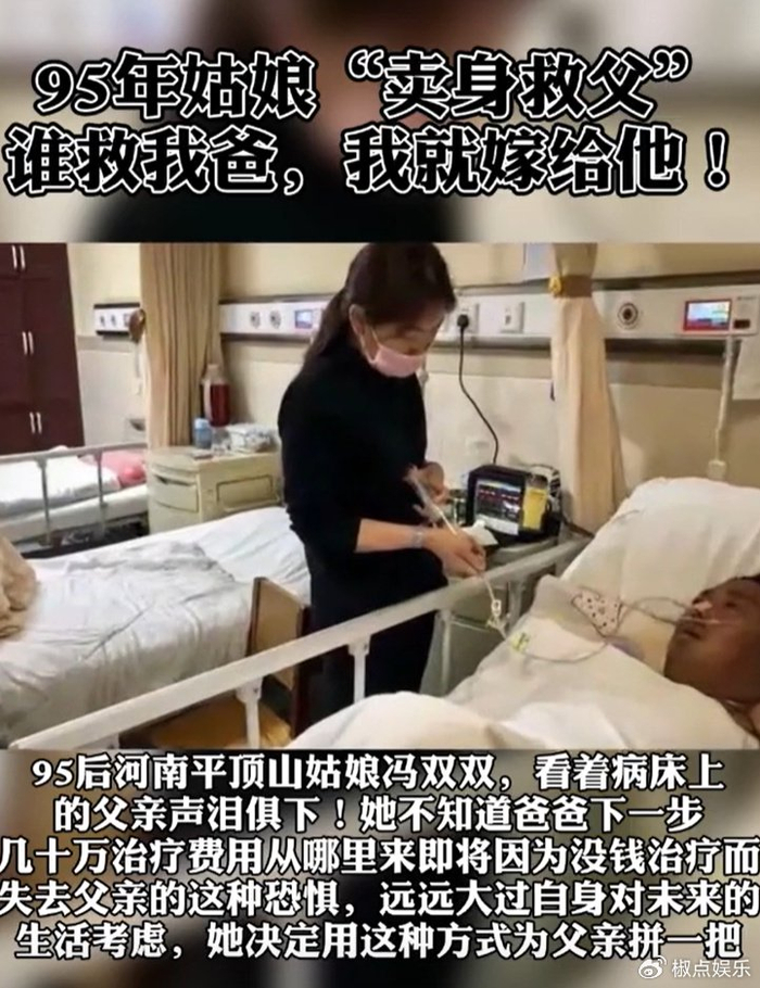 就在绝望之际,冯双双决定向网络求助。2020年5月27日,她在各大社交平台发布视频,哭诉自己的困境,并表示只要有人愿意出资40万帮助救治父亲,她就愿意嫁给对方。