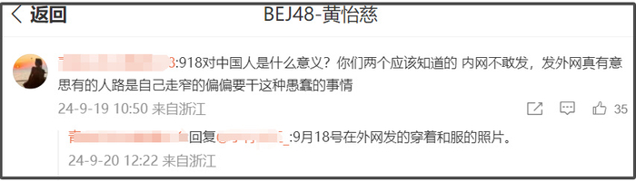 许多网友指出,黄怡慈明知“九·一八”是中国历史上的重要纪念日,却在这一天晒出和服照,显然是对历史的无知和漠视。