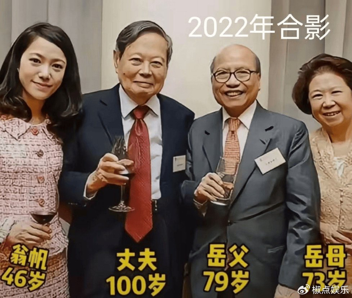 在他身旁,小他54岁的娇妻翁帆,用爱与陪伴,为这段跨越年龄的爱情佳话增添了更多温馨色彩。她身穿黑色长裙,举止优雅,与来宾们热情交谈,展现了她细致周到的女主人风范。