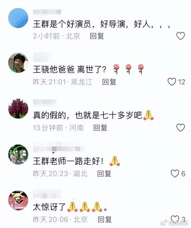 他的离世让不少网友感叹生命无常,也引发了大家对亲情的思考和珍惜。不少网友纷纷在社交平台留言,表达对王群的哀悼和对王馥荔、王骁的慰问,希望他们能够早日走出伤痛,坚强面对未来。