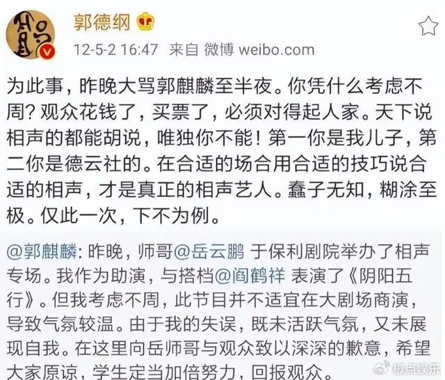他深知,相声艺术的传承与发展需要一代又一代人的共同努力和不断创新。而郭麒麟作为新一代相声演员的代表,正是肩负着这一重任的合适人选。