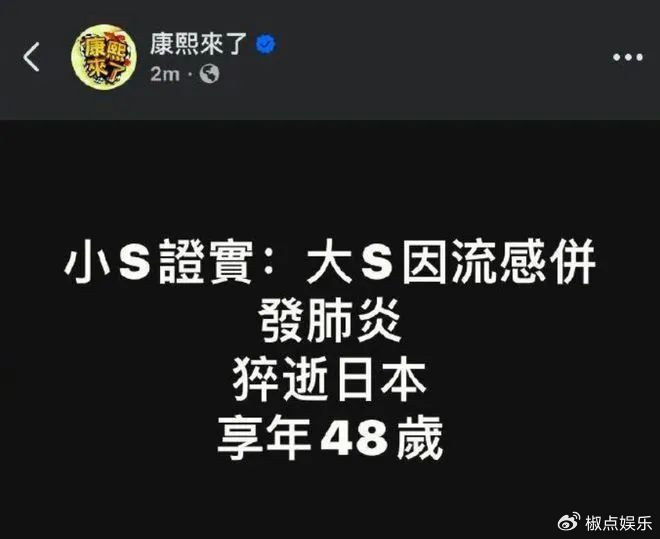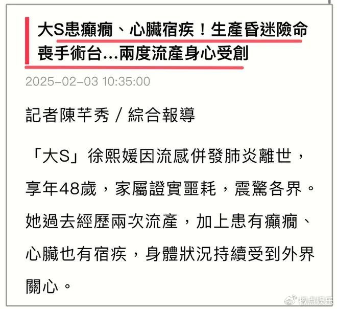 网传大S去世最新进展来了,台媒报道证实了大S的死讯,并发布了家属回应。