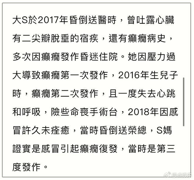 此外,还有网友对大S的生前健康状况表示担忧。他们认为大S长期依赖药物、多次病发进行抢救的情况早已为她的离世埋下了伏笔,这也引发了人们对娱乐圈明星健康问题的关注和思考。