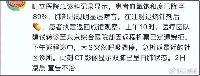 2月4日,一则关于大S在日本就诊的详细报告在网络上曝光,引发广泛关注与热议。