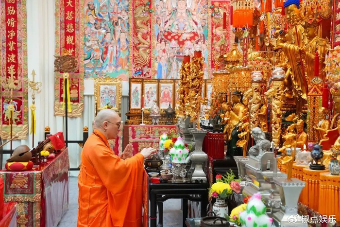 灵堂地下层,一座佛坛庄严肃穆。多位高僧在此为李兆基诵经超度,诵经声悠悠回荡,寄托着对逝者的无尽哀思。