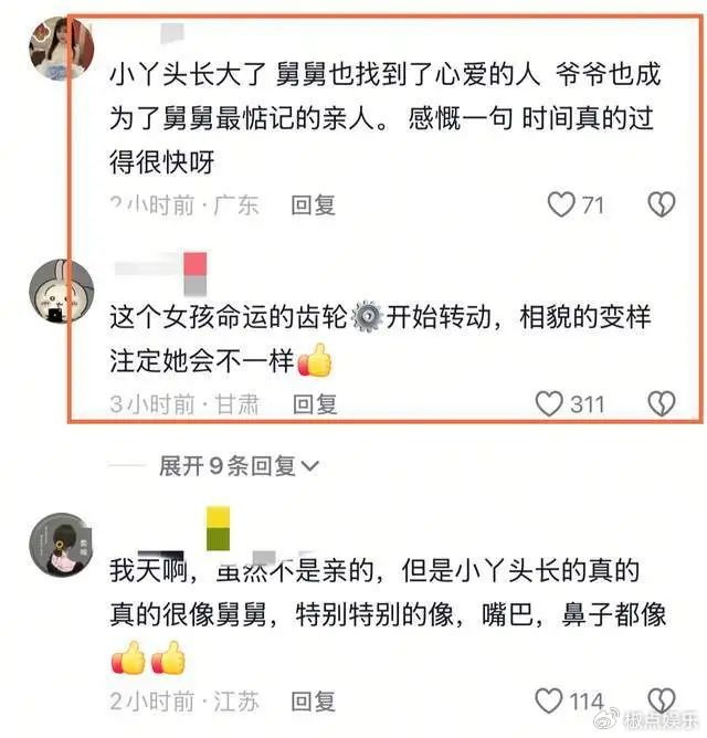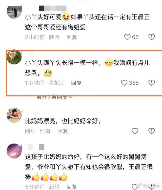 仔细看小丫头的模样,简直和妈妈丫头是一个模子里刻出来的,眉宇间、嘴角都像极了,网友们纷纷感慨:“仿佛看到丫头重生,这就是生命的延续啊!”