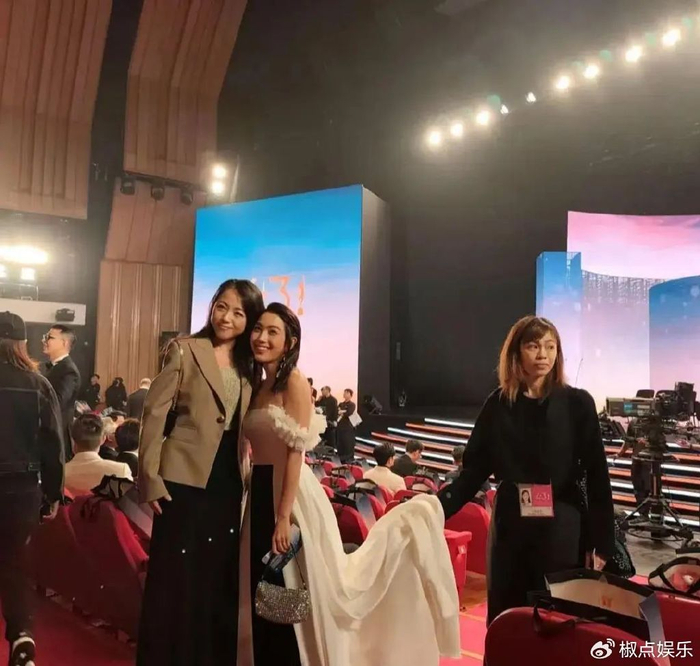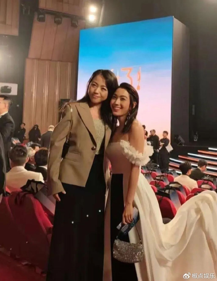 再看看尔冬升,当天一身黑色西服,笔挺帅气,虽说年近古稀,但精气神十足,气场一点不输年轻小伙。作为本届金像奖主席,他那可是忙得脚不沾地,一边要把控现场大局,一边还得亲自布置颁奖现场,不过,即便如此,他也没忘了照顾女儿。