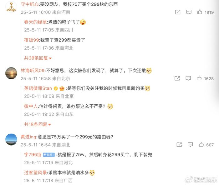 还有人算了一笔账,按照299元的市场价,75万都能买2800多台了!这数字一对比,简直让人笑掉大牙。