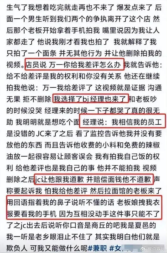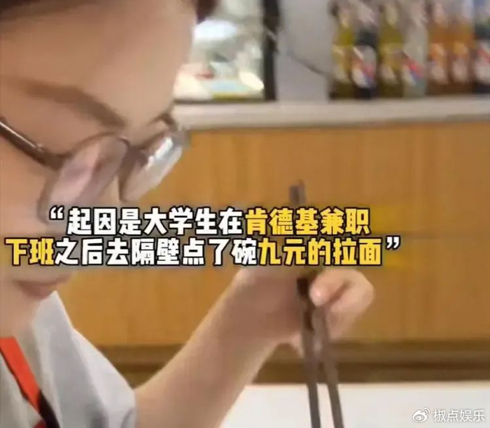 事情发生在五一假期,一个在肯德基兼职的女大学生,穿着工装去吃面。本想着随便填个肚子,结果碰上了史上最奇葩的店家。