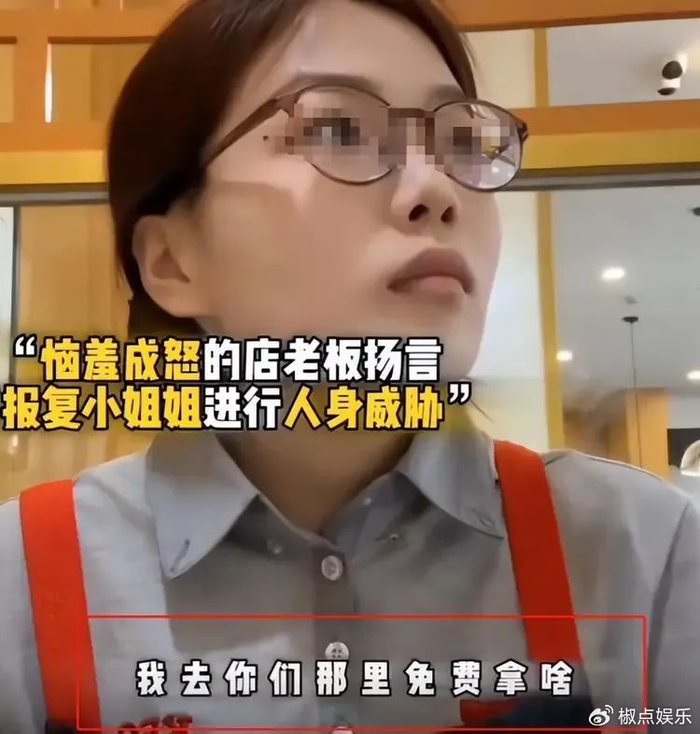 女生回怼一句“服务员怎么了”,老板更来劲了,喊来老板娘一起“围攻”。老板娘一上来就人身攻击:“穿得这么寒酸,还想加料汁?一看就是想占便宜!”
