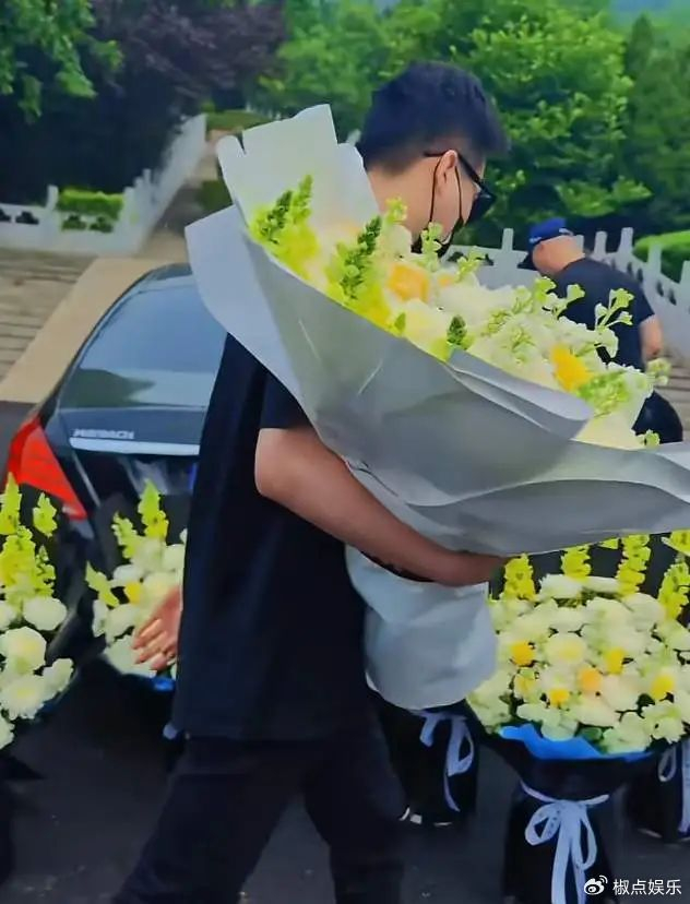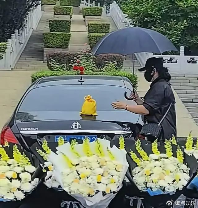 抵达墓园后,张敬手捧黄色布袋,撑着黑伞,神情庄重地走向加代的墓地,身旁还带着几束娇艳欲滴的鲜花。走在她身后的儿子,身姿挺拔,仅从背影便能看出其帅气。