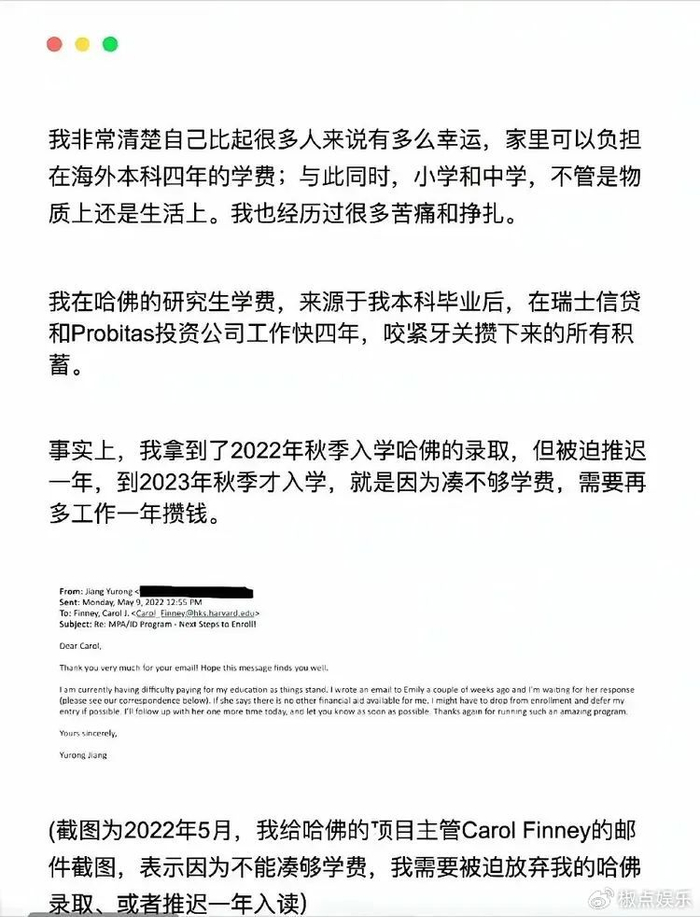 她还信誓旦旦地说,家里没钱,读哈佛的学费是自己实习4年攒下来的。