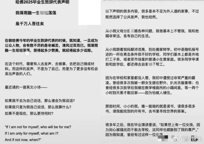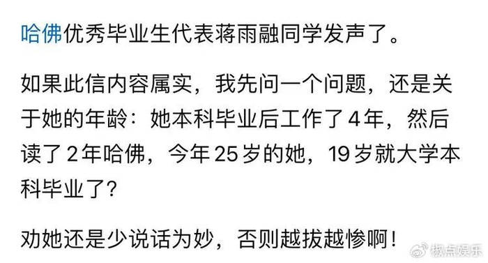如今,大家更看重的是真实、是脚踏实地的努力。蒋雨融本有机会凭借自己的真才实学赢得尊重,可这一番弄巧成拙的“澄清”,让她陷入了更大的舆论漩涡。