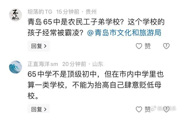 更让人摸不着头脑的是,她口中那所“不好的学校”,被网友一查,居然是当地的重点中学青岛65中。虽说不是拔尖的,但也绝不是她描述的那般不堪。