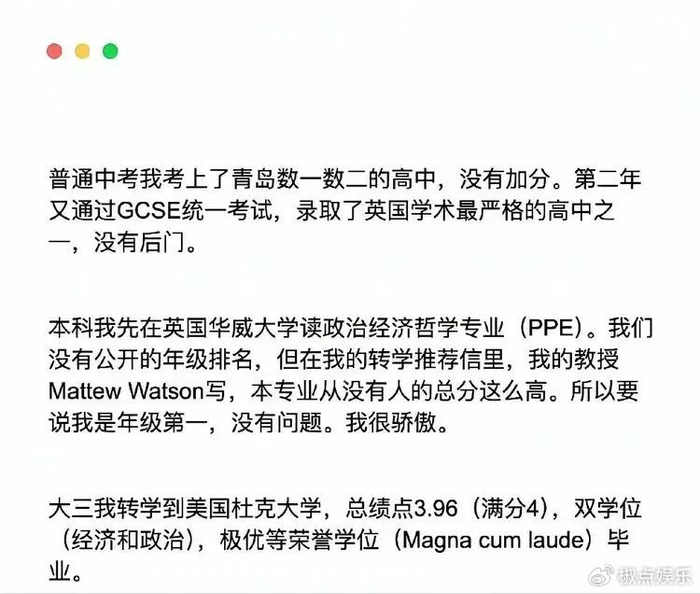 而蒋雨融这边,尽管她已经多次发文澄清,坚称自己进入哈佛靠的是自身努力,推荐信来自其他老师和工作领导,绿发会的推荐信并未提交。但在网友们的“放大镜”下,她的解释似乎难以平息众怒。