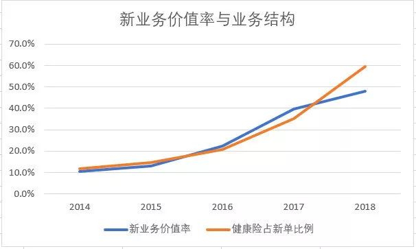 新华保险这几年最大的数据亮点在于新业务价值率的快速提升,而促进这一成果的原因在于新华这几年大力发展了健康险。从2015年开始转型以来,新华保险极力推广以健康险为代表的长期保障型业务。