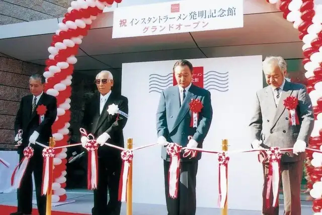 日清食品创始人安藤百福(左2)在大阪方便面纪念馆揭幕仪式上