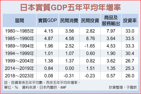 然而,实践结果表明,这一雄心勃勃的计划未能触及日本经济的根本病灶。2014-2019年,日本平均经济成长率仅0.84%,民间消费近乎零增长,投资与出口依旧疲软。截至2018-2023年,平均增长率进一步萎缩至0.08%,多项关键指标落入负增长区间。