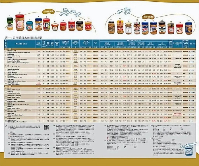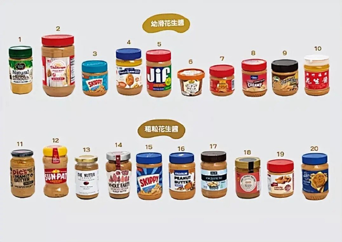 香港消费者委员会于近期对市场上20个品牌的花生酱进行了对比测评。