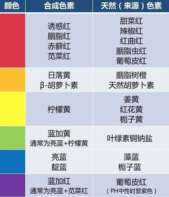 美国1960年允许使用的合成色素有35种现仅剩下8种。我国允许使用的人工合成色素也只有8种。