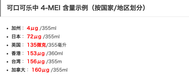 例如,作为“肥宅水”的两大掌门,无论是可口可乐还是百事可乐,都在使用焦糖色素,但在不同国家的配方里对4—甲基咪唑限量不同。这也使得焦糖色素用量有所差异。