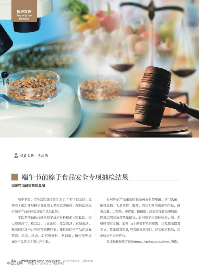2024年端午节前,国家市场监督管理总局曾对全国粽子食品安全进行专项监督抽检,共抽检粽子及原材料糯米450批次,涉及100个品牌215家生产企业。