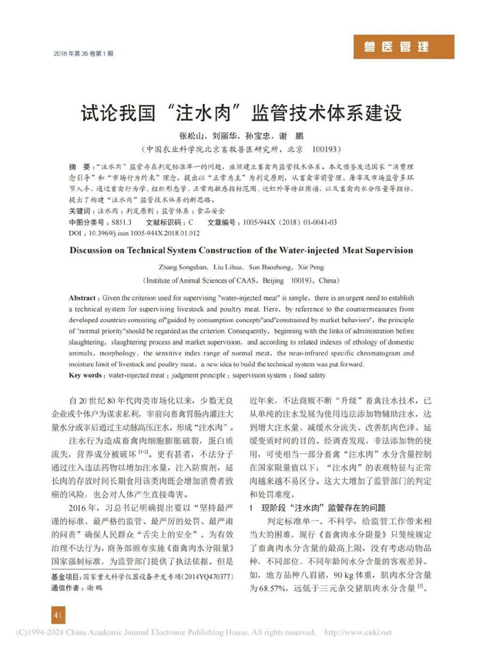 论文认为,我国现行的“注水肉”判定标准单一、不科学。