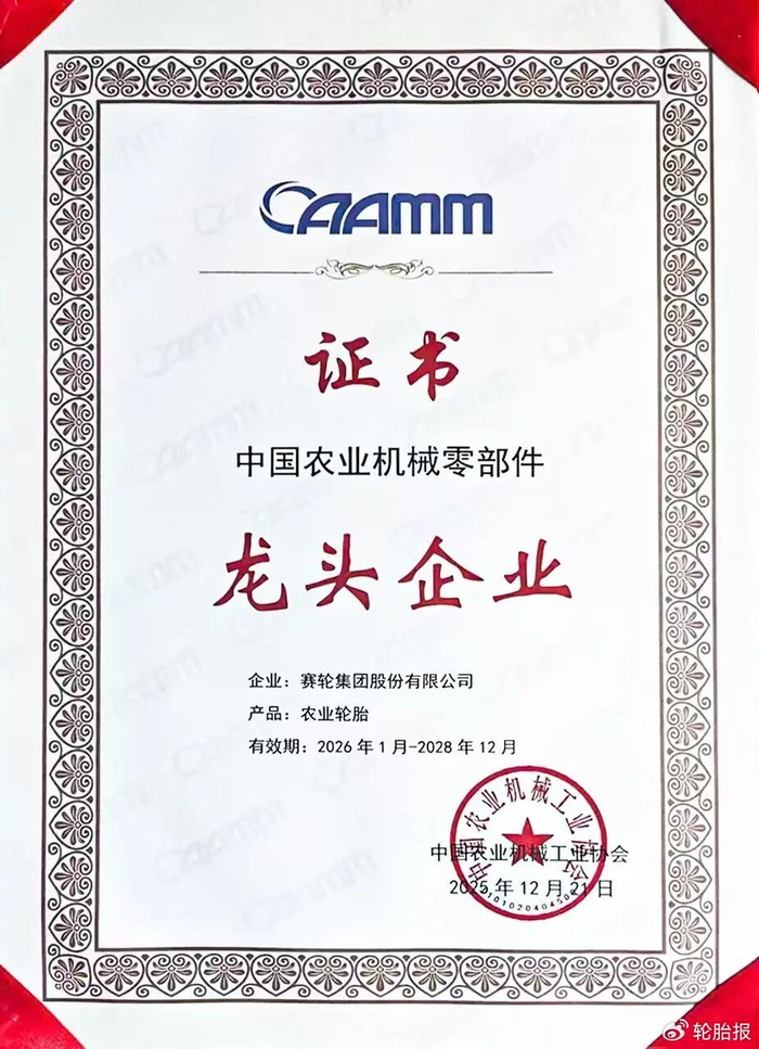 近日,在浙江杭州召开的2025年全国农机工业工作会议暨中国农业机械工业协会七届二次理事会上,赛轮集团凭借在农业轮胎领域的卓越技术实力与市场领导地位,荣获“中国农业机械零部件龙头企业”称号。这一每三年评选一次的权威奖项,不仅是对赛轮旗下MAXAM(迈驰)品牌产品性能与服务体系的高度认可,也标志着这家中国轮胎巨头在赋能现代农业发展的道路上迈出了坚实一步。
