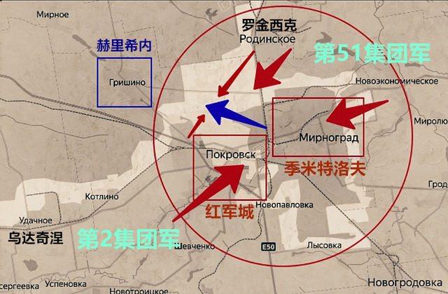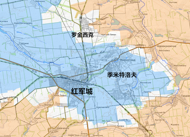 不过季米特洛夫以东,有不少卫星村镇,直到俄军占领新经济镇以及在罗金西克以南方向有进展后,才算是形成了对季米特洛夫的半包围。