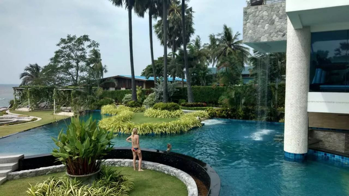 足足800平米的泳池,应该在整个泰国都没什么对手了……