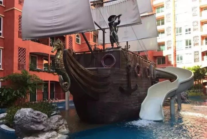 选中的那套海景小公寓,说起来也挺有趣。可以说是泰国那么多精致妖娆的楼盘里,一股独树一帜的泥石流。