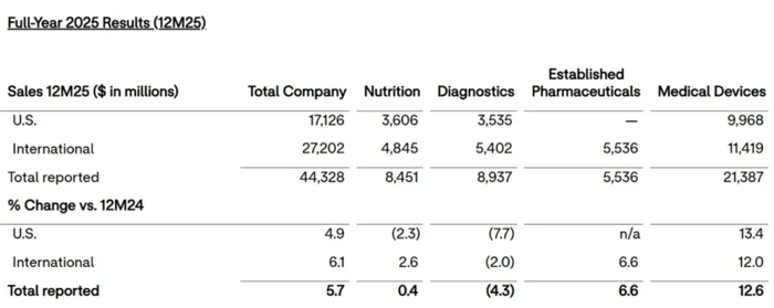 ▲雅培2025财年财务数据总览(单位:$百万)