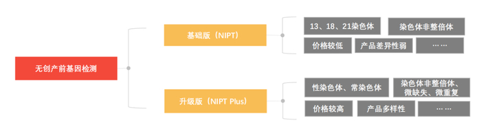 于此同时,随着技术迭代,NIPT逐渐从原先仅能检测21三体综合征(唐氏综合征)、18三体综合征(爱德华氏综合征)、13三体综合征(帕陶氏综合征)风险,扩展到可以检测其他染色体非整倍体、部分明确的染色体缺失/重复综合征,甚至单基因遗传病的NIPT-Plus产品,