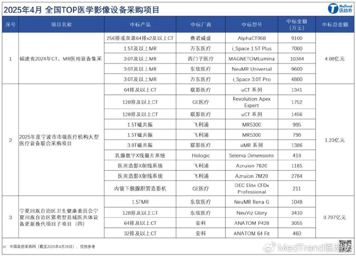 尽管目前它可能尚未对市场造成显著影响,但从4月份的医学影像设备招投标数据中,我们已经能够窥见一些端倪。
