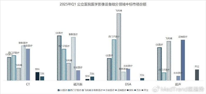 与2024年相比,CT市场的变化最显著;国产厂商如联影医疗、东软医疗的增速尤为迅猛。